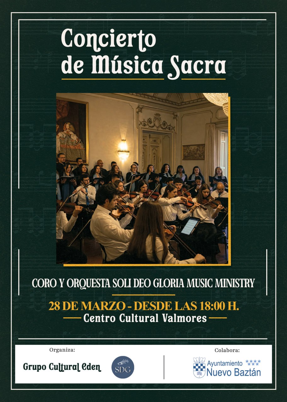 El sábado 24 de marzo presentamos en el Centro Cultural Valmores situado en la calle Ronda de Manchester, 133 en Nuevo Baztán (Madrid) un Concierto de música sacra. Con participación de el coro, la orquesta y solistas.